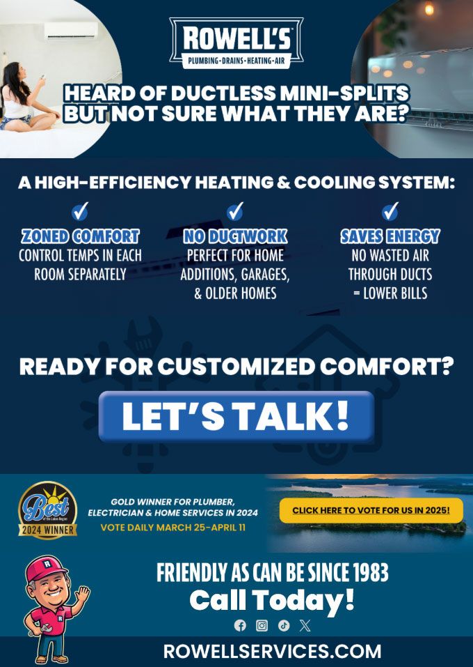 "Friendly As Can Be Since 1983!" When you need help with your plumbing, drains, heating, cooling or electrical in Auburn, you can always rely on Rowell's Services! Call us now or book online!