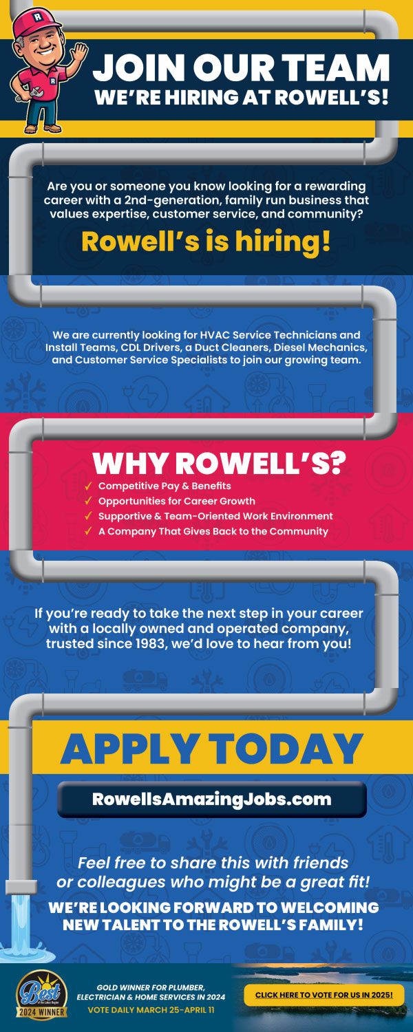 Are you or someone you know looking for a rewarding career with a 2nd-generation, family run business that values expertise, customer service, and community? Rowell's is hiring!